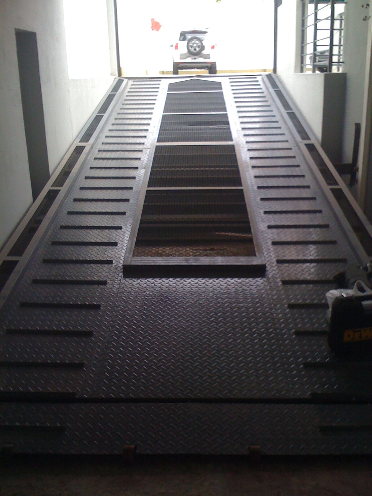 Estas rampas hidráulicas son plataformas de elevación diseñadas para salvar diferencias de altura en estacionamientos y cocheras, permitiendo el paso entre un piso y otro.